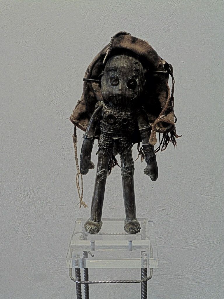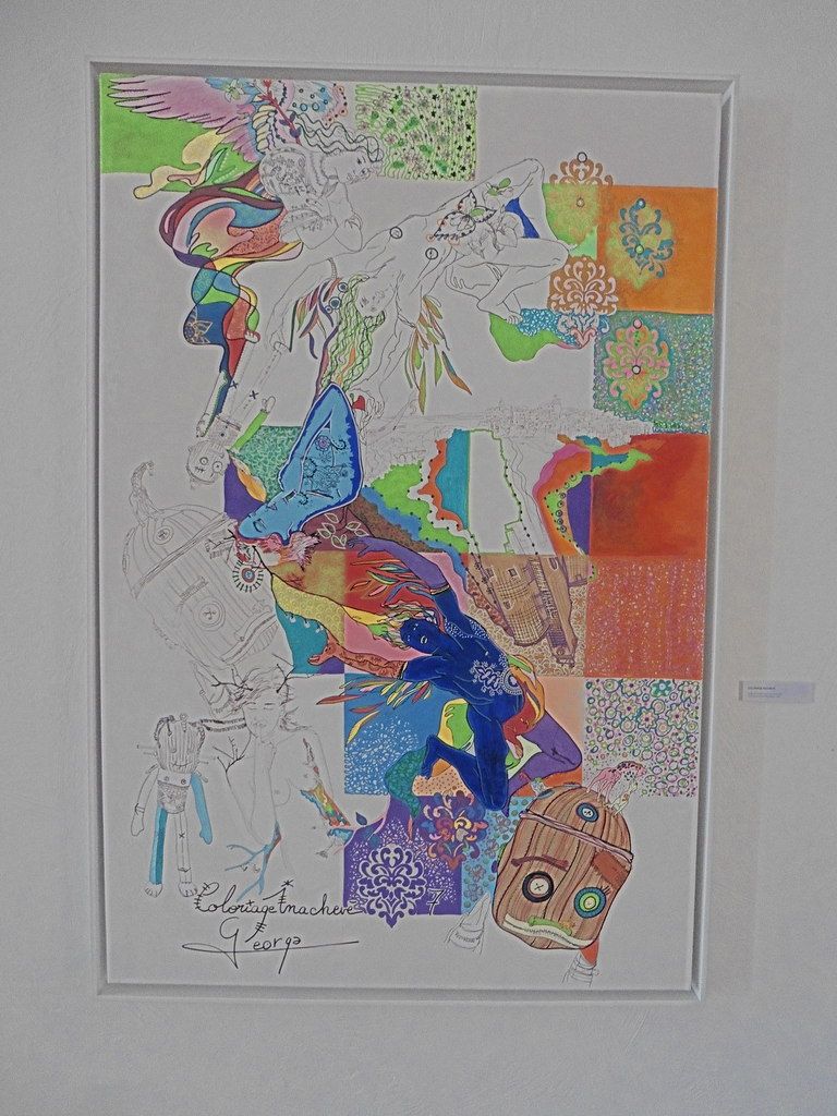 The artist George finds his inspiration inside the Dada movement (irony and disrespect of the technical ways of making) and also inside the surrealism movement (hazard and spontaneous of gestures). Today she attracks herself with the drift point of view invented by the surrealists and the poet Michel Butor. The drift has been theorized by Guy Debord who analyzes it as the theory of the built and the unbuilt spaces influencing the urban sociology. The drift theory materializes here towards the Doodles and the colouring unfinished canvas. These two ways of making invoke the George childhood leaded by travels (Pacifique, ...) and meetings with other cultures she integrates inside her artwork. The Doodles decline itself in several sizes (Doodle 30 cm, Tiki Popa'a 75 cm, Tavana Rahi 1, 70 m) and are made with bronze in a fondery for looking like fetichs or woodoo puppets of African Art. George paints also big canvas named "Unfinished colouring" where she speaks about short and fragmented stories connected with Hokosaï, Picasso and the elephants. The list owns any end but produces a disorder breaking codes, drawings, colors and forms. George gives to each visitor a travel book like the Middle Age crudential because she wants to propose a memory. On each step of the seventh exhibitions between 2019 and 2020 a seal will be put on this travel book.